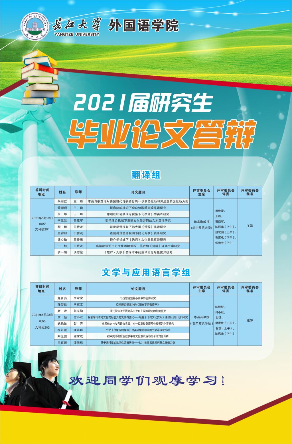 米兰网页版2021年5月硕士毕业论文答辩公告