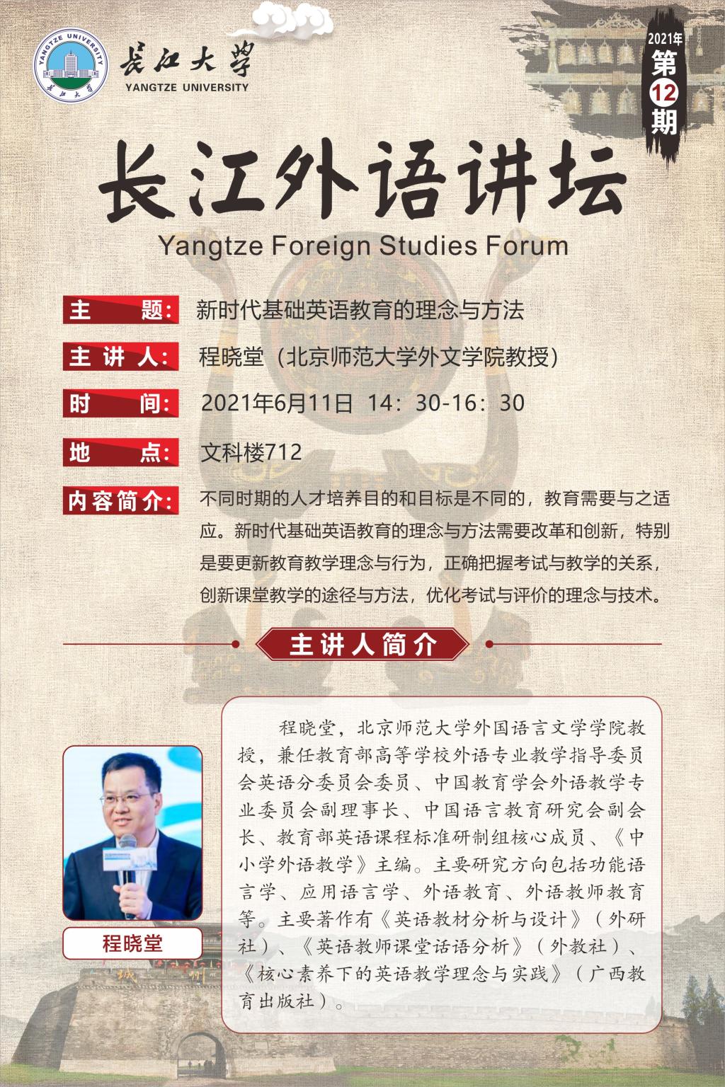 长江外语讲坛(2021年第十二讲):新时代基础英语教育的理念与方法