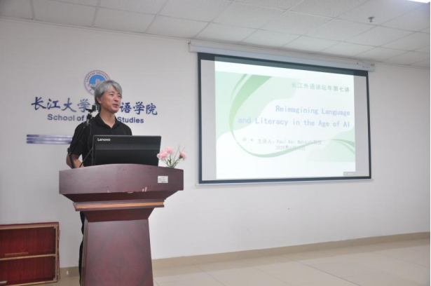 (通讯员 徐欣怡)6月12日上午,米兰体育(中国)在文科大楼712室举办了长江外语讲坛2025年第七讲,Paul Kei Matsuda教授受邀作学术报告,以“Reimagining Language and Literacy in the Age of AI”为主题,同参会师生进行了深入探讨。2023级,2024级全体研究生及部分教师参与活动。