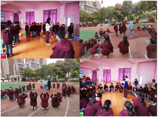 下午2时,戏剧小组成员张苏晨、周敏分别在户外操场、舞蹈教室开始了她们的教学活动。本次戏剧课堂的主题是——The very hungry caterpillar。两位团队成员先带同学们进行课前热身活动——Freeze and Splash,然后通过毛毛虫变蝴蝶的故事引出今天的剧目,邀请孩子们一幕幕上台展示,一步步引导他们进行对话,锻炼孩子们的英语表达能力,整节课课堂气氛活跃。临近尾声,两位小老师就今天的戏剧课内容进行总结,并布置了课后任务,鼓励学生们发挥自己的想象,思考如何通过语言、声音、肢体动作来演绎角色?各自可以有怎样不同的角色介绍和出场?